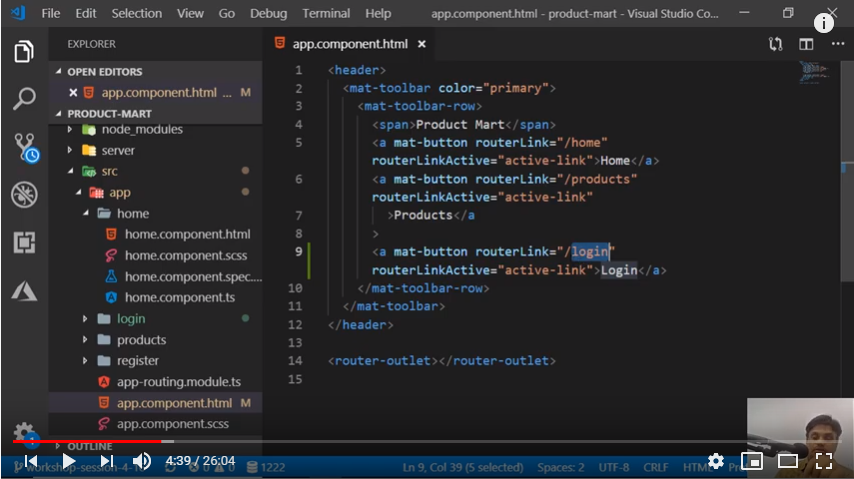 In case of new user he should be redirected to registration page. Creating registration component we will see in our next demo session Creating Registration Component | Angular | Demo | 0009-17