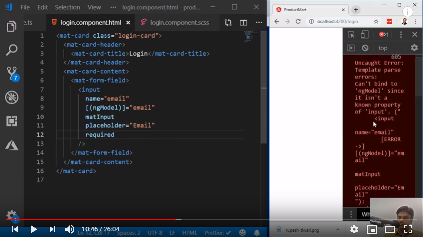 Next we will try to make it this Login page more practical by putting some text and features. While performing this we faced one error saying ngmodel is not a known property.