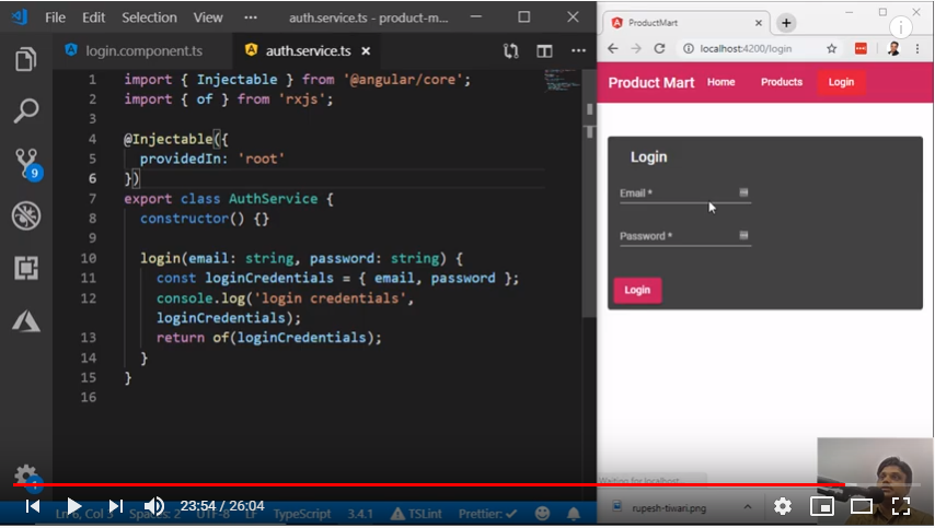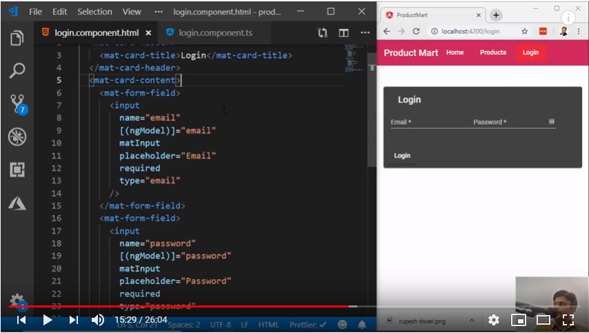 In this demo session Adding Log In Component | Angular | Demo| 0009-16 we will learn to implement Login functionality in our app. With this functionality, user will be able to log-in, log-out and register them if they are first time users. In our subsequent demo sessions we will also see how to host our API in in-memory & in server as a RESTFUL API.