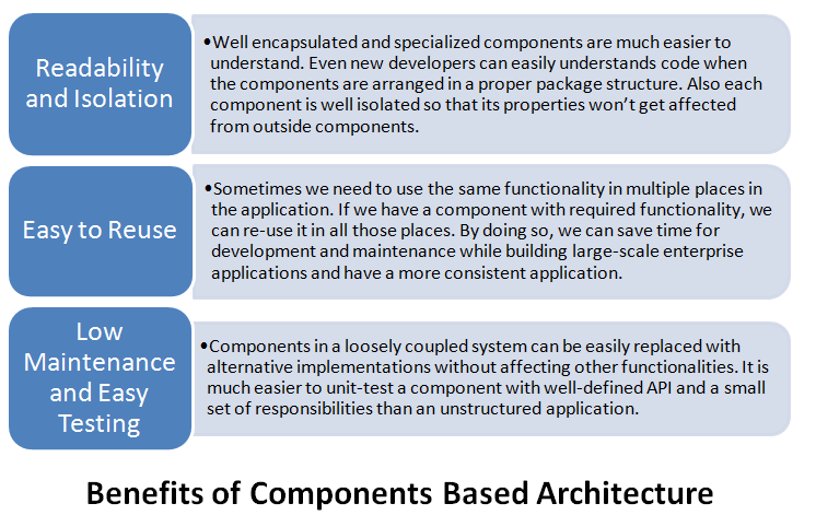Due to its component based architecture, angular has capability to protect our code for future. It is basically making our code future ready as each component contains only elements with related functionality. They are well encapsulated, loosely coupled and provide a clean API that does not reveal the component’s internal state.