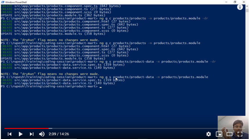 One very important thing to remember here is for each module we need some data and for that data we need to create service. Will go to products module and create some service there to serve required data. Command to be used to create service here is ng g s products/product-data –m products/products.module