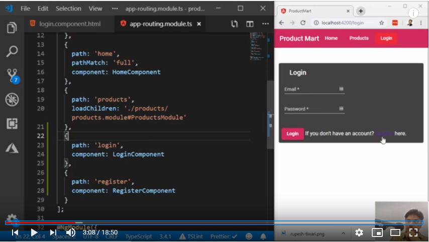In this demo session Creating Registration Component | Angular | Demo | 0009-17 we will first create registration component which will allow us to save user information in database. This will also begin our journey towards mongo DB. In our video session we will see how to make all required coding changes step by step in detail. To make this article more understanding we have placed snapshots to check output side by side for each step.