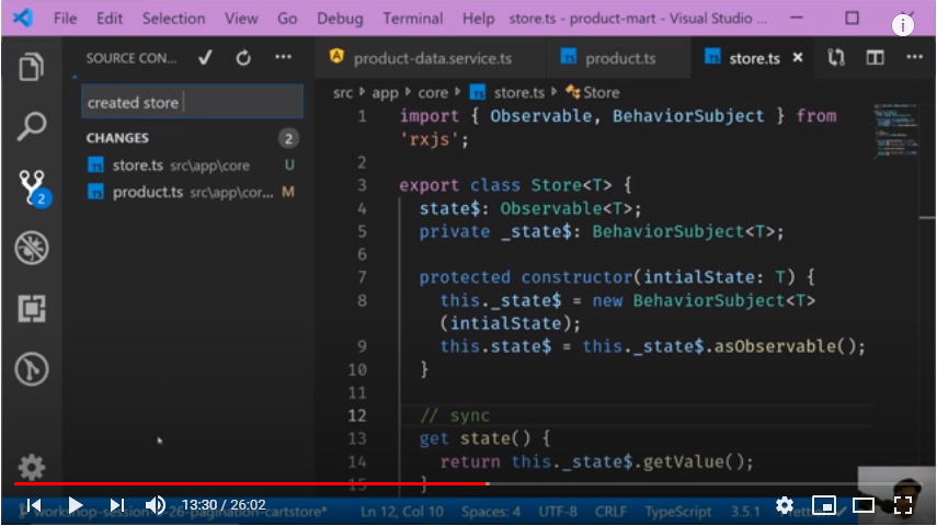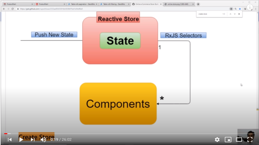 In this video session Creating Store Using RxJS | Angular | Demo we will create our Cart store and it is nothing but just a wrapper on top of state, so it becomes reactive state that way. In other words, reactive store is RxJS behavior Subject, wrapping over some initial state and then we will keep pushing the Next state. Here we will build reactive store and then we will create some selectors to see how they are helping components to get data.