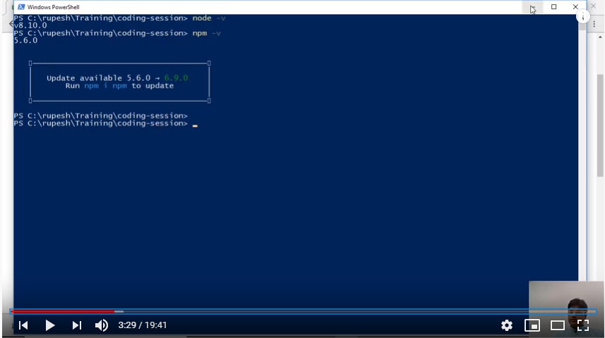 After installation we can check in PowerShell which version is installed or if it’s already there in our system we can check which version we have by using command node -v. Along with this we can check which npm version node.js has installed by using npm –v.