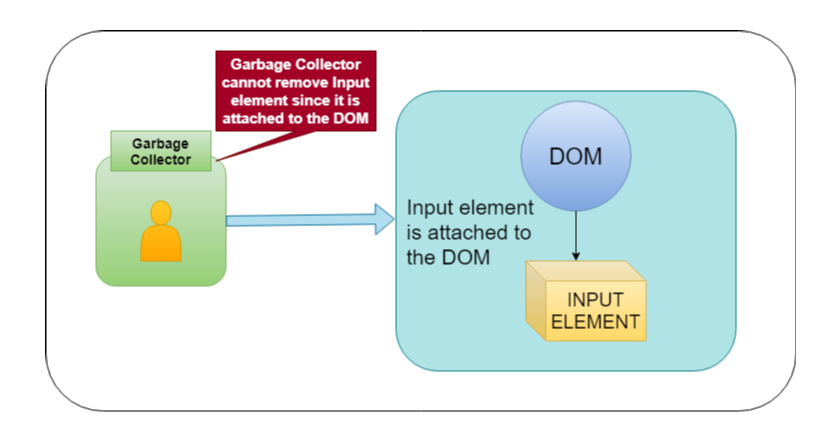 When an HTML element is showing on the page and functional it is attached to the DOM. Therefore, garbage collector checks for these DOM elements and it will not remove them fully from the page.
