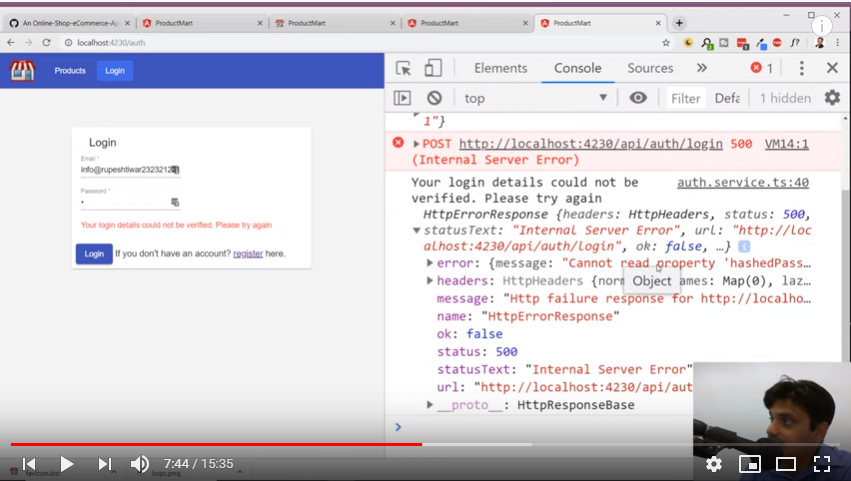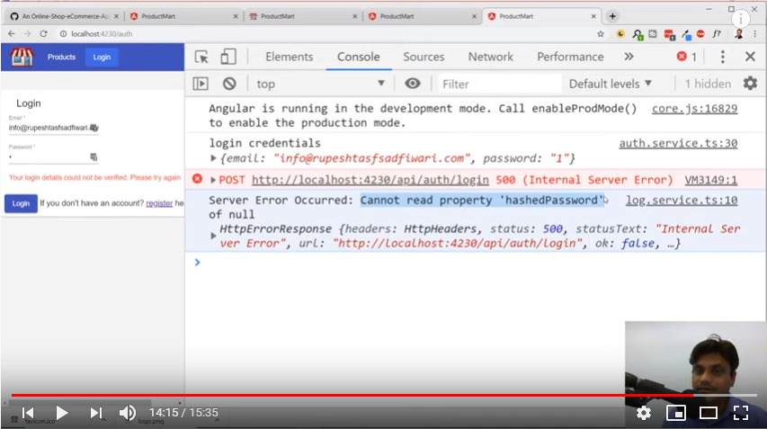 As we discussed in our previous video session Designing Shopping Page Using Angular Material Grid And Card | 0009-26, our web app is now growing as we are adding more features into it and making its design better. Since our application is growing, now the most important challenge is to handle the server side errors properly and sending adequate information to client side. We will see in this demo session Handling Server Side HTTP Error | 0009-27 what are all the problems we have in our code and how to rectify them through proper error handling.