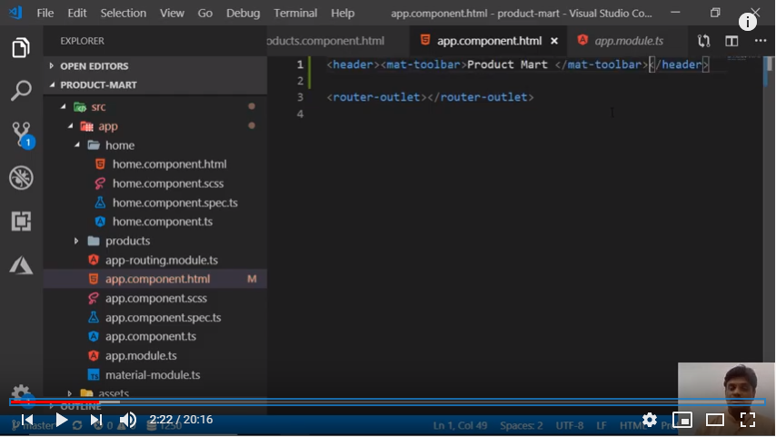 In this demo session Integrating Toolbar | Angular CLI | Demo | 0009-13 we will see how to integrate toolbar in our angular app. In order to put toolbar in our app component app.component.html we need angular material component. As we already imported material module earlier in our app.module.ts, now we can directly pull toolbar code from angular material site. We will go to toolbar under Navigation heading and take its basic source code.