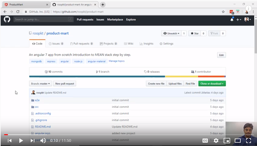 As you begin learning of coding basics, one important thing which makes your learning process easier and practical is availability of code. Most of the online sessions lacks in providing code which is being used while giving demo. To overcome this we have checked in all our code into GitHub repository. One can visit our GitHub code base https://github.com/rupeshtiwari/product-mart to get the code snippet for this project. Complete code for our project PRODUCT MART – an angular app on MEAN stack is checked into GitHub. You can fork it & follow it from there.