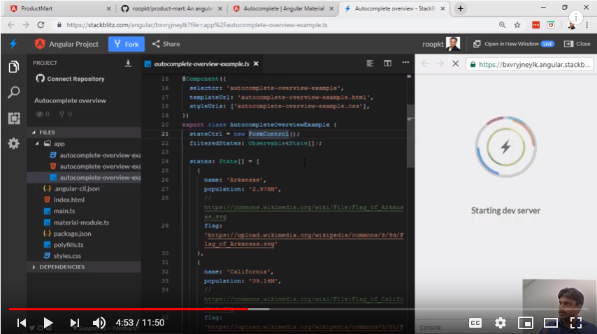 Along with providing HTML, TS & CSS, angular team also provide go live option to see the code. If we open stackblitz, it will open live code and we can observe or learn how exactly code is working. Even we can fork it or submit this code in GitHub also.