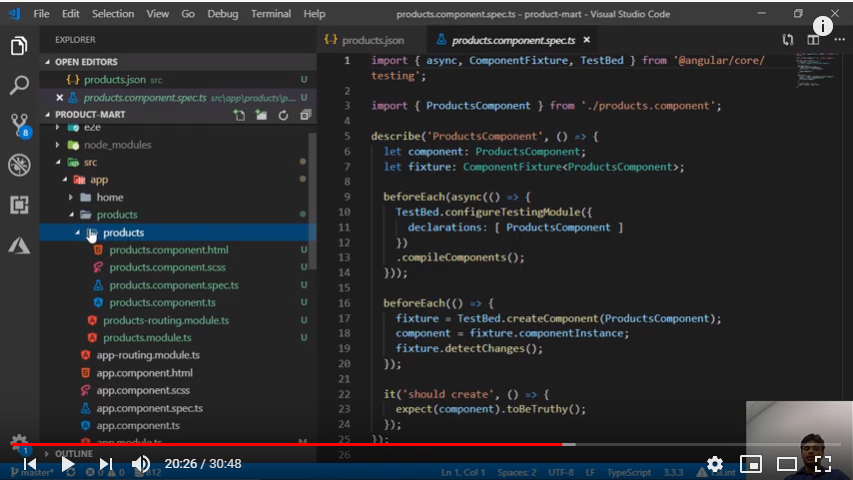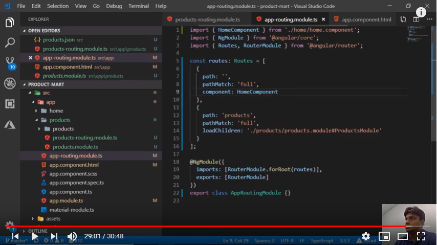 In continuity of our demo session Creating Products Module | Lazy loaded module | Angular | 0009-09 we will see how to create Products page for our app keeping in mind Lazy load concept. We will not load our products on homepage instead will create separate product module and load it on demand or on click of our products page icon. Below are few coding snapshots and its respective outcomes from our demo session.