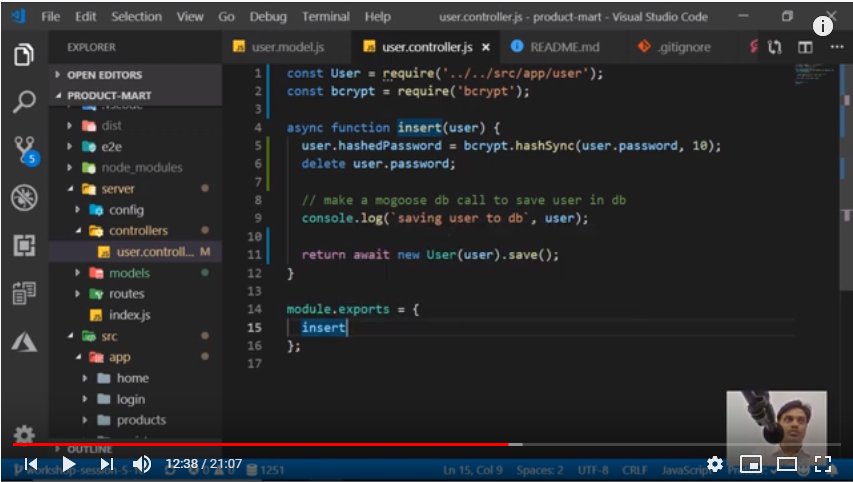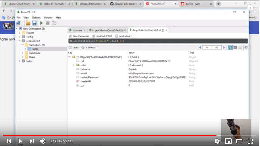 In this video session Saving User To MongoDB | Mongoose | Demo | 0009-22 we will explain how to save user data in mongo db and how to validate user at server using Mongoose User Schema.