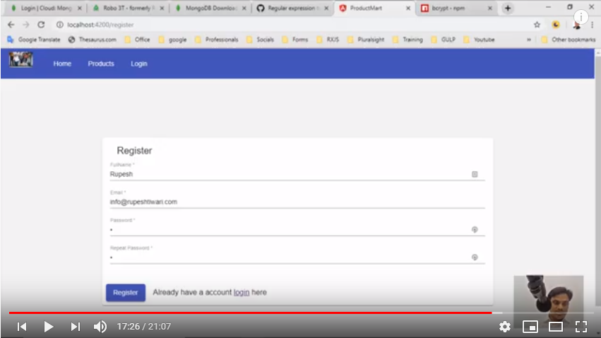 Now we can finally enter the user details in registration page of our product mart app and, on click of register button, User data will saved to db.